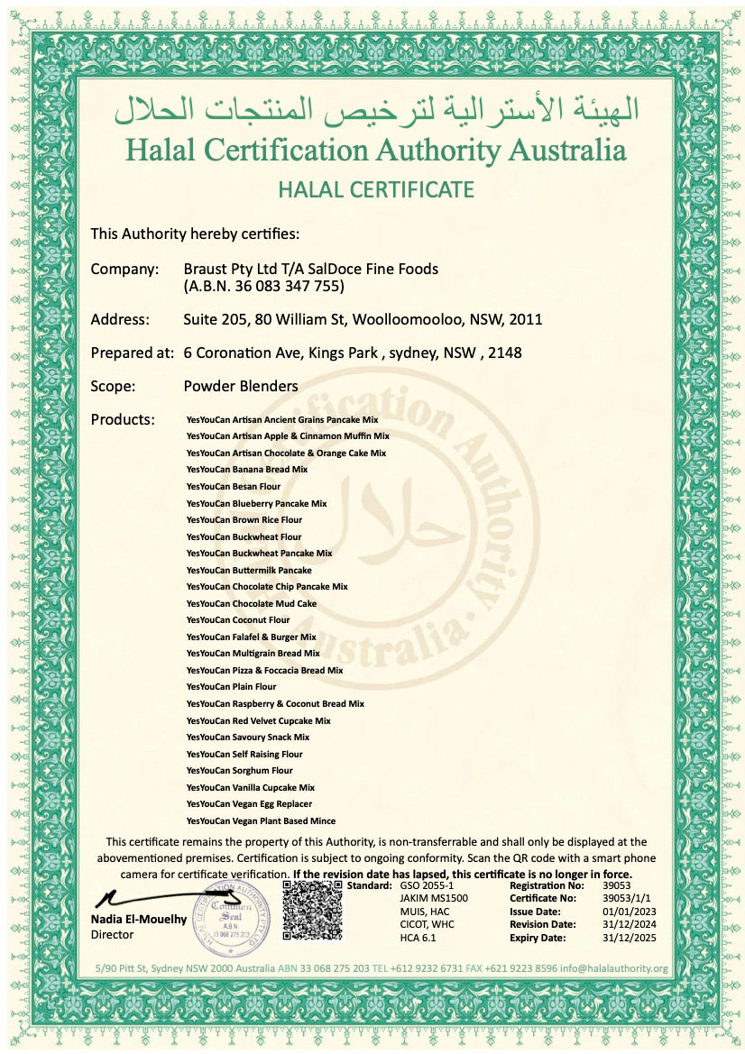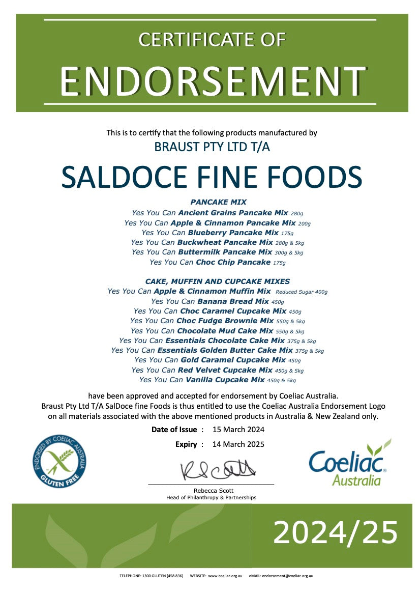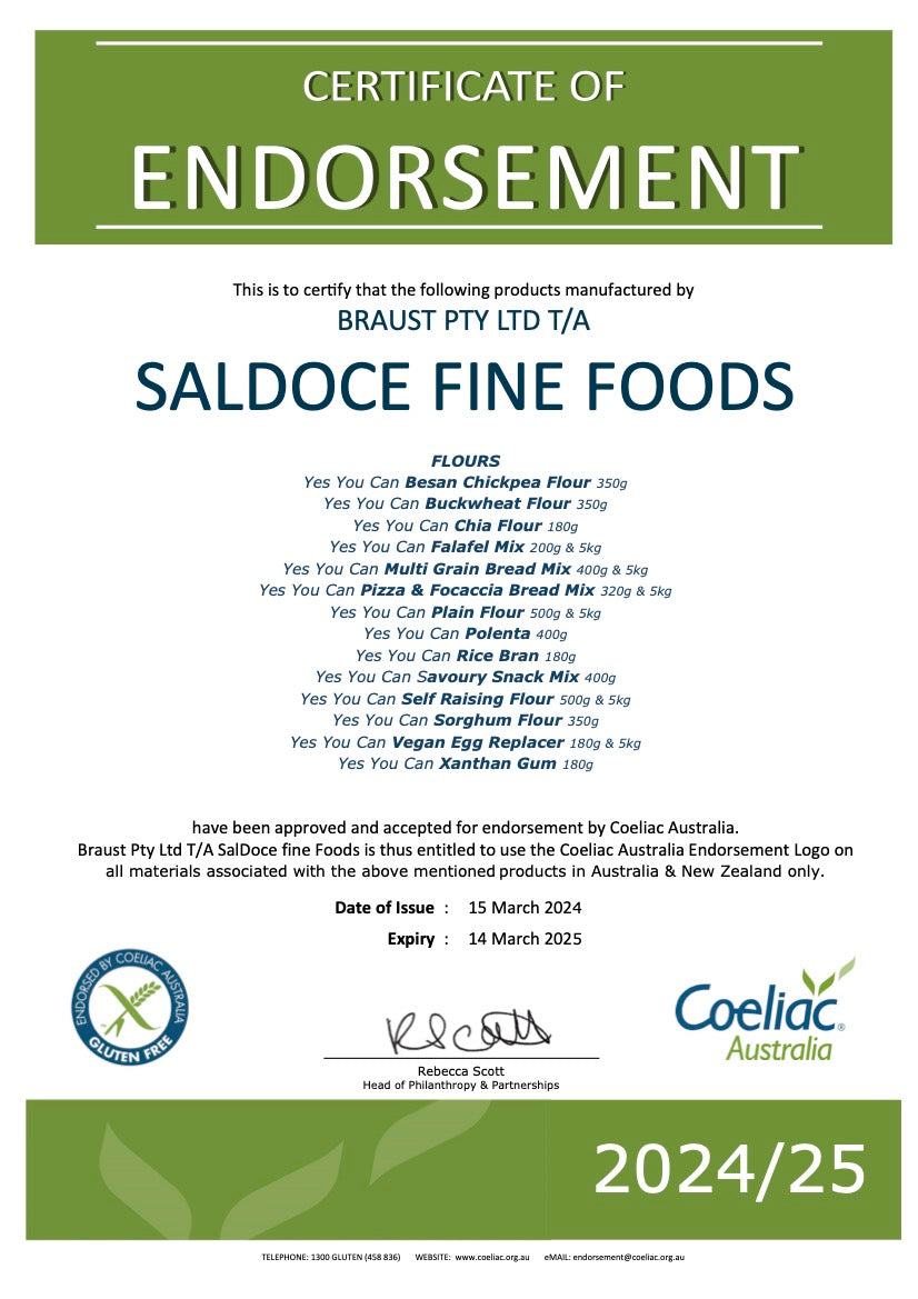 YesYouCan Gluten Free Products follows strict quality assurance guidelines and is also endorsed by Coeliac Australia as well as HACCP approved.